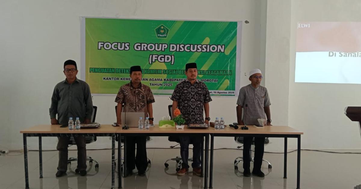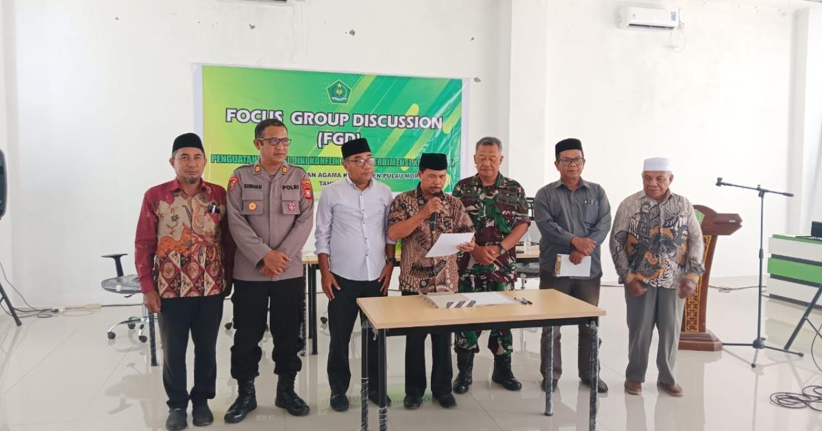 Morotai, Muhajirin Baru — (Humas Kemenag Morotai) Kantor Kementerian Agama (Kemenag) Kabupaten Pulau Morotai melalui Seksi Bimbingan Masyarakat Islam menggelar Focus Group Discussion (FGD) bertema “Penguatan Deteksi Dini Konflik Sosial Berdimensi Keagamaan” di Aula PLHUT, pada Sabtu (16/8/2025) pagi.