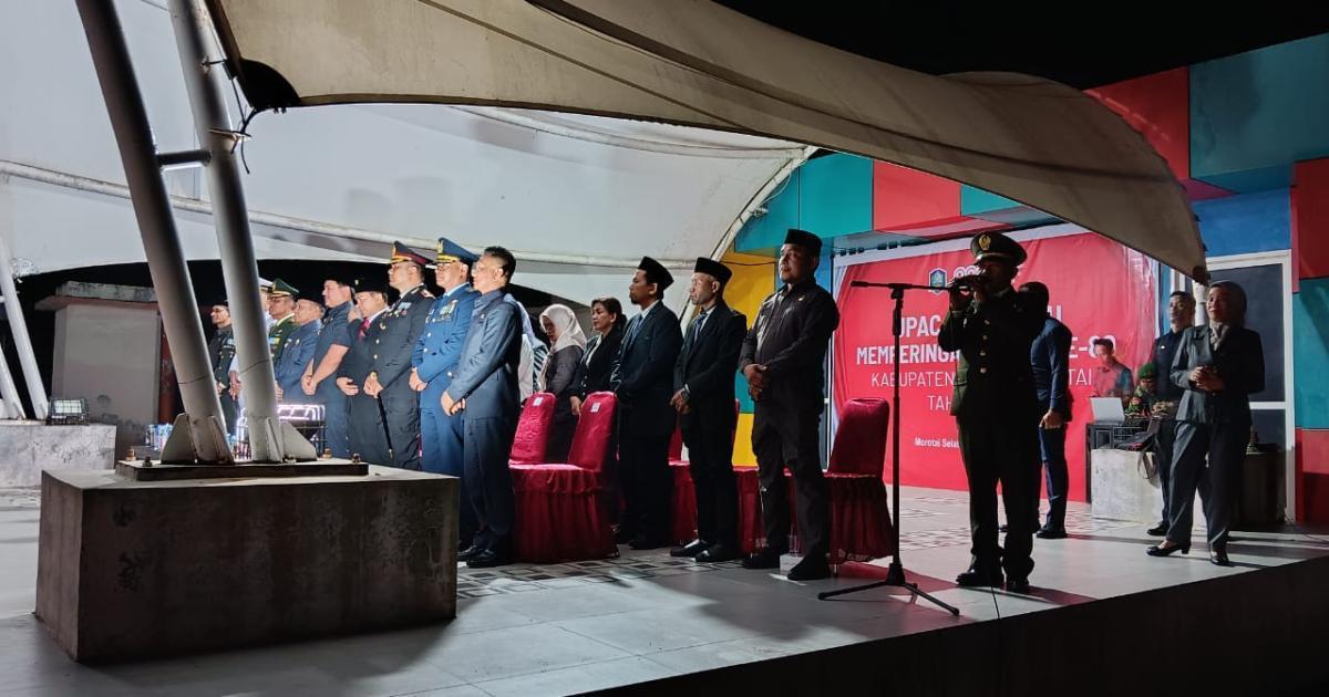 Morotai, Daruba - ( Humas Kemenag Morotai) - Kepala Kantor Kementerian Agama Kabupaten Pulau Morotai yang diwakili Staf Seksi Bimbingan Masyarakat Islam,Mujibur Rahmad Kautjil, S. Sy, menghadiri sekaligus pimpin doa Upacara Taptu dalam rangka memperingati Hari Ulang Tahun (HUT) ke-88 Kemerdekaan Republik Indonesia, Jumat (16/8/2025) malam. Upacara yang berlangsung di Taman Kota Daruba itu dimulai pukul 19.30 WIT sampai selesai.