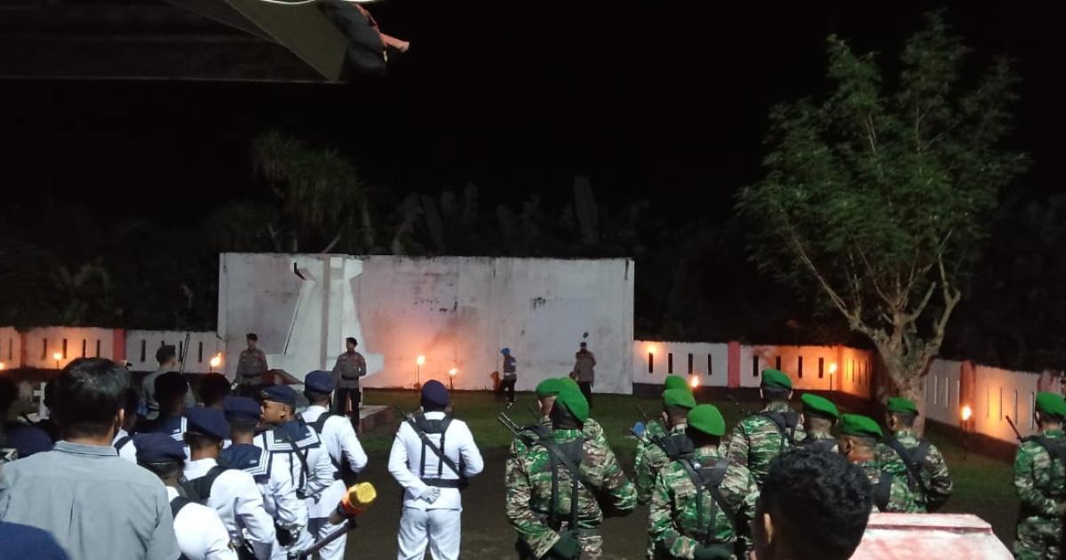 Morotai, Wawama - (Humas Kemenag Morotai) - Langit malam Morotai, minggu (17/8/2025), menjadi saksi khidmatnya Apel Kehormatan dan Renungan Suci di Taman Makam Pahlawan. Cahaya obor yang berjejer di pusara para pahlawan seakan mengingatkan hadirin pada jejak pengorbanan yang tak pernah lekang oleh zaman.