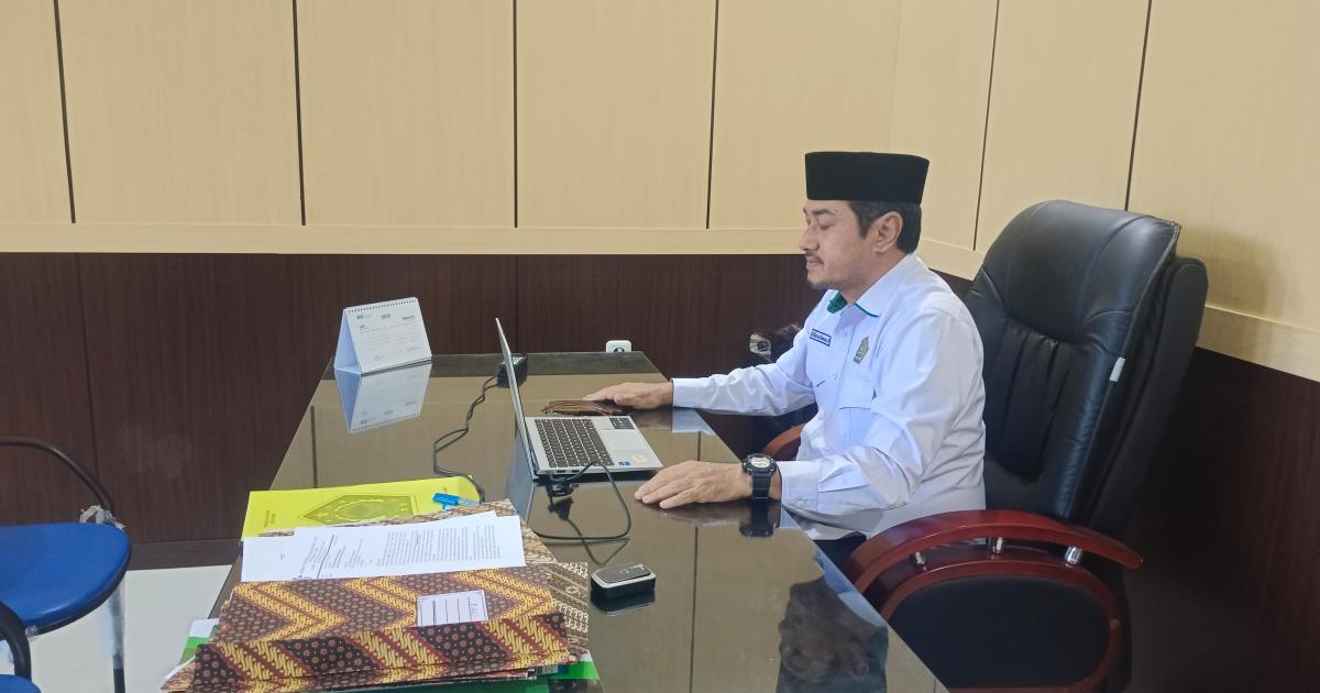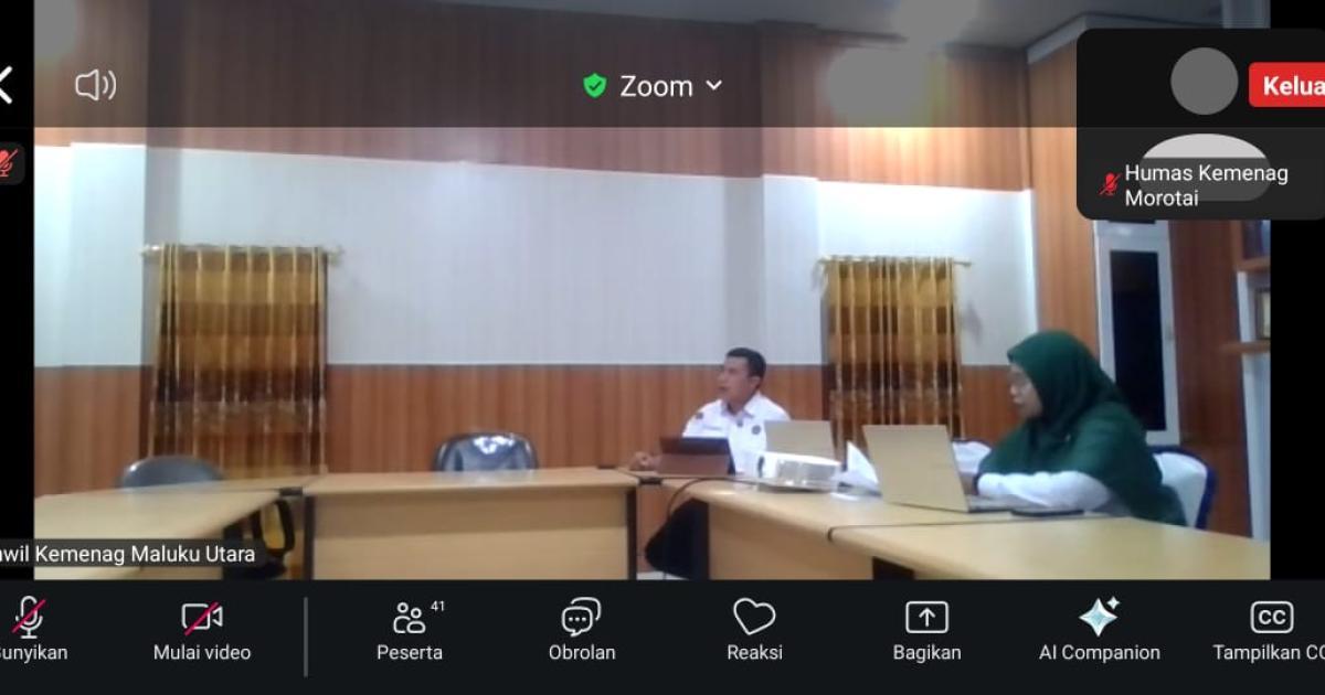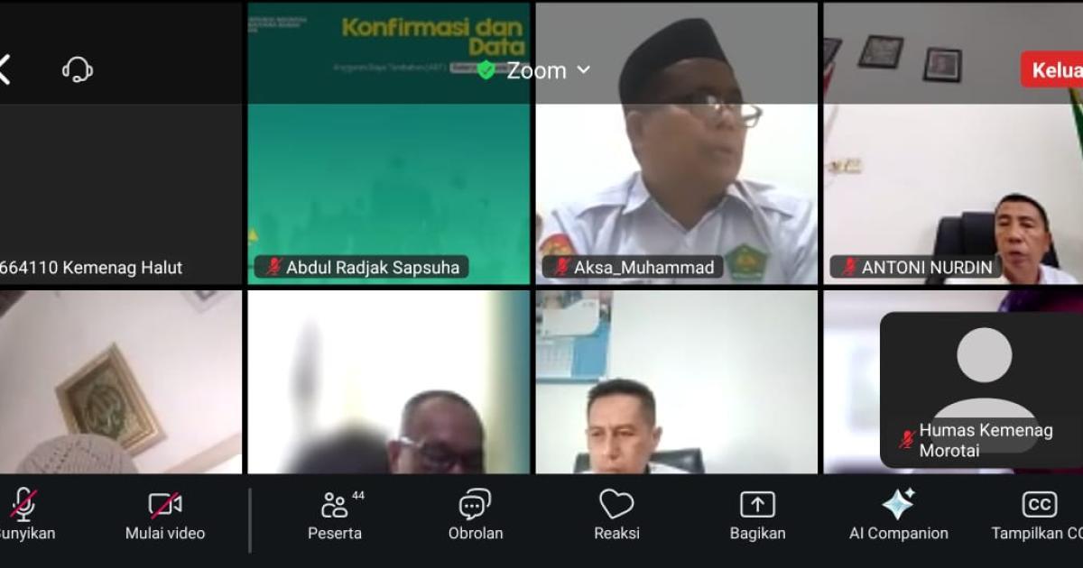 Morotai – (Humas Kemenag Morotai) – Kepala Kantor Kementerian Agama (Kakankemenag) Kabupaten Pulau Morotai, H. Abdurachman Assagaf, S.Ag., M.Pd.I, mengikuti rapat daring (Zoom Meeting) terkait Konfirmasi dan Validasi Data Dukung Anggaran Biaya Tambahan (ABT) Belanja Pegawai Tahun 2025 pada Aplikasi HRMS di ruang kerja Kakankemenag, Senin (11/8/2025) pagi.