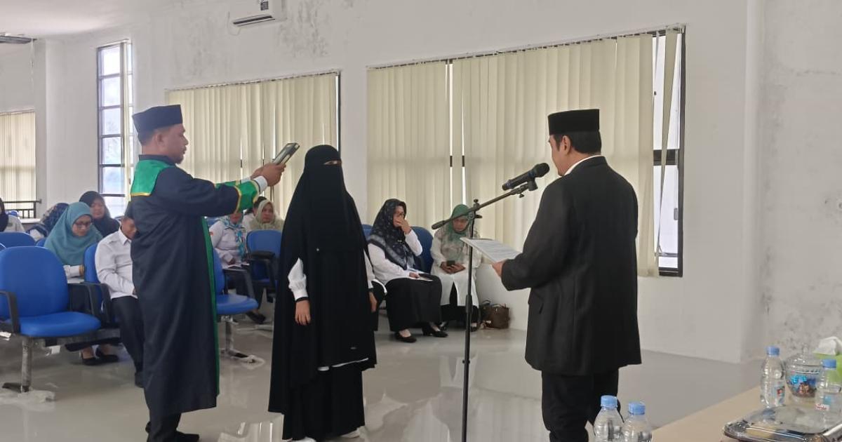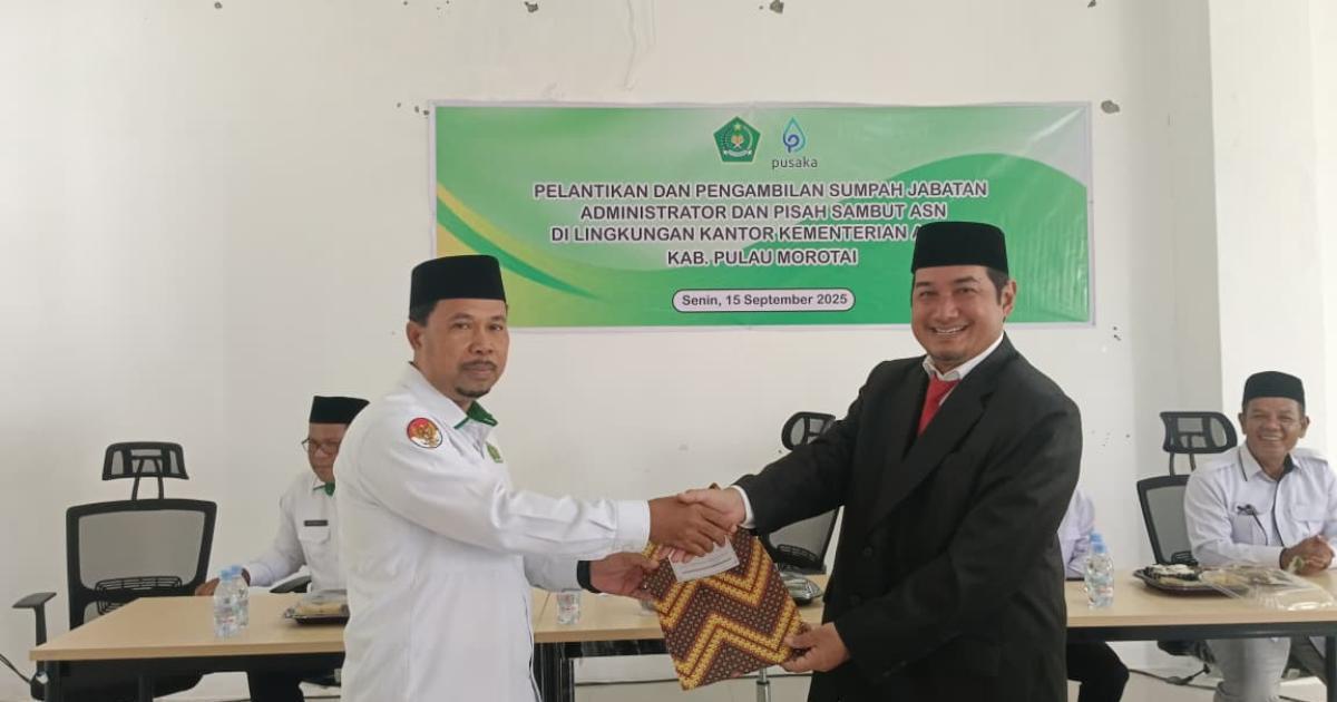 Morotai — (Humas Kemenag Morotai) — Kantor Kementerian Agama Kabupaten Pulau Morotai melantik dan mengambil sumpah jabatan administrator di Aula Gedung Penyelenggaraan Haji dan Umrah Terpadu (PLHUT), Senin (15/9/2025) pagi. Mariani S.Pd resmi menjabat sebagai Kepala Urusan Tata Usaha MTsN 1 Morotai setelah sebelumnya bertugas sebagai staf kepegawaian di Kantor Kemenag Morotai.