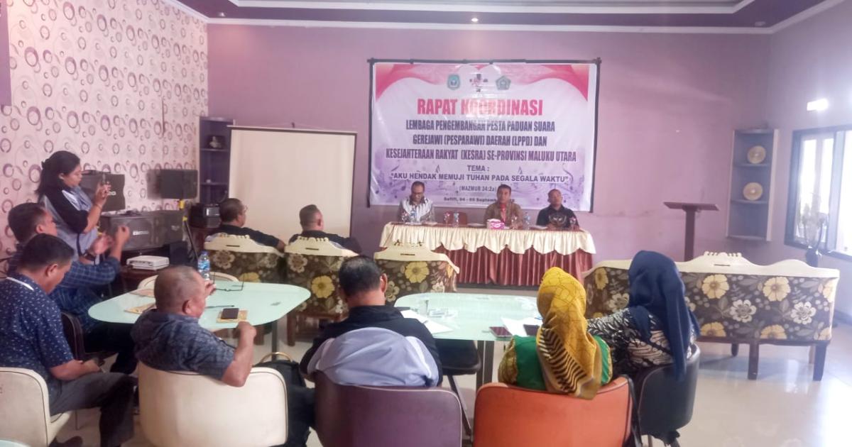 Sofifi, - (Humas Kemenag Morotai) - Menjelang pelaksanaan Eksebisi Pesta Paduan Suara Gerejawi (Pesparawi) dan Lomba Yangere tingkat Provinsi Maluku Utara, Lembaga Pengembangan Pesparawi Daerah (LPPD) Maluku Utara menggelar rapat koordinasi bersama jajaran LPPD kabupaten/kota serta bagian kesejahteraan rakyat (Kesra).