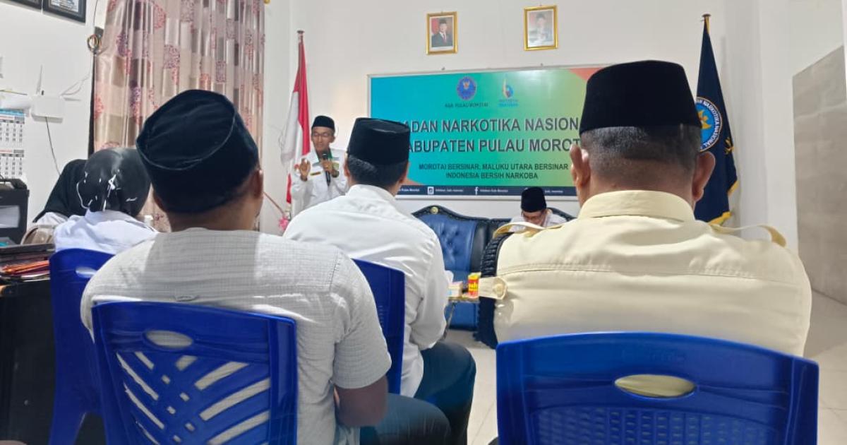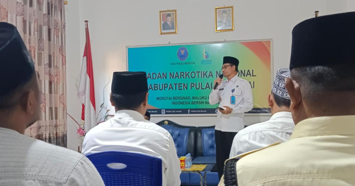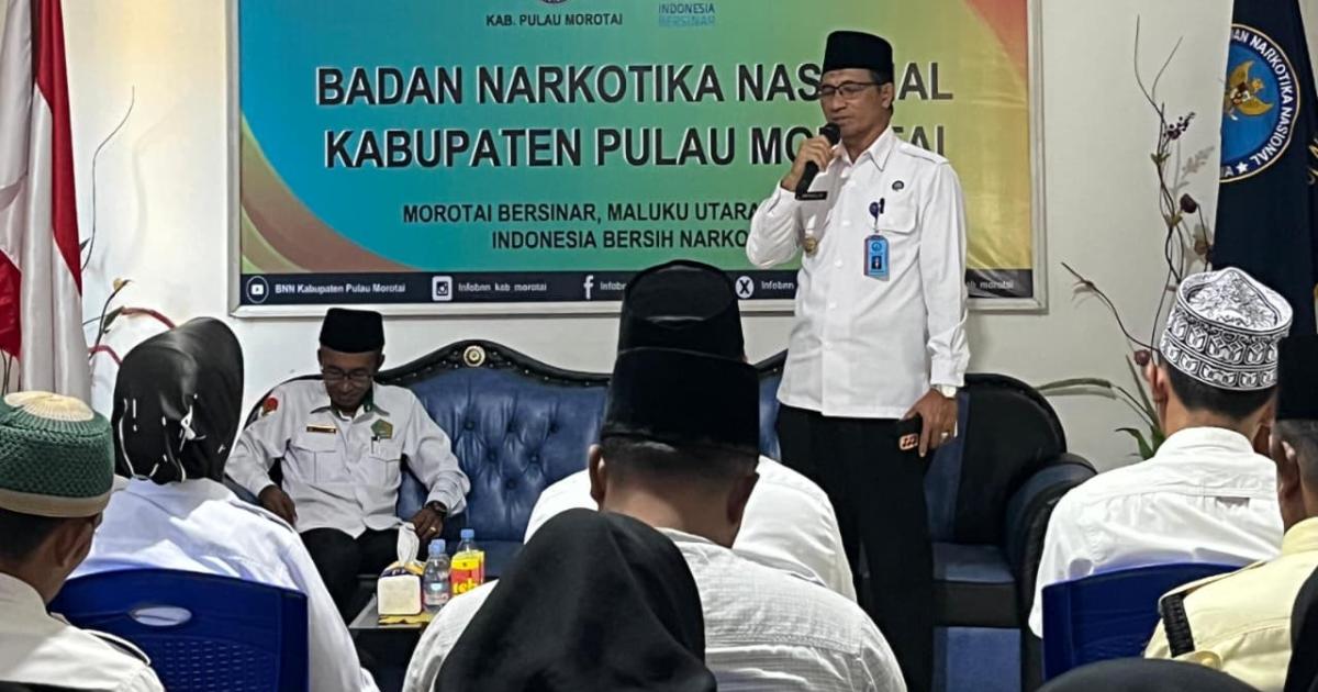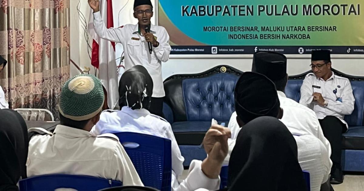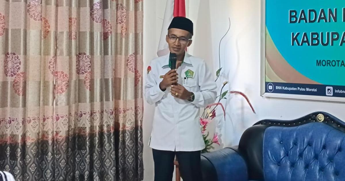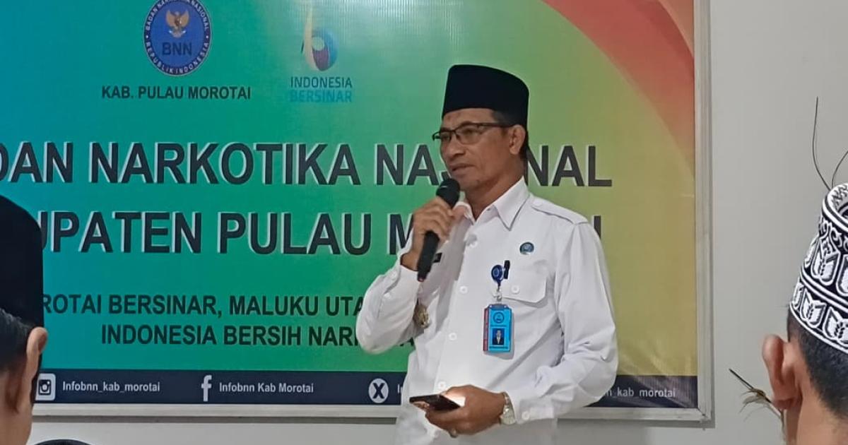 Morotai – (Humas Kemenag Morotai) – Kepala Sub. Bagian Tata Usaha Kantor Kementerian Agama Kabupaten Pulau Morotai, H. Musanif Sibua, S.Ag., MM., menjadi penceramah dalam peringatan Maulid Nabi Muhammad SAW yang digelar di kantor Badan Narkotika Nasional Kabupaten (BNNK) Pulau Morotai, Senin (22/9/2025) pagi.