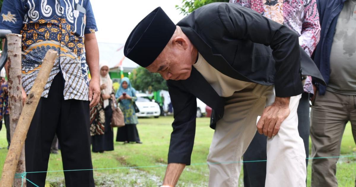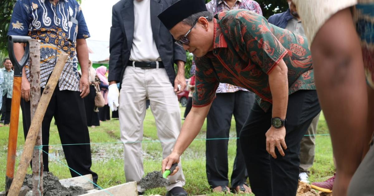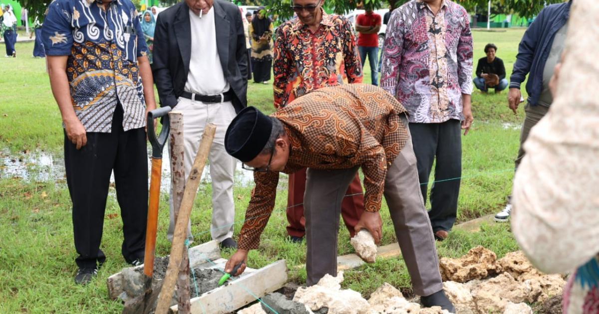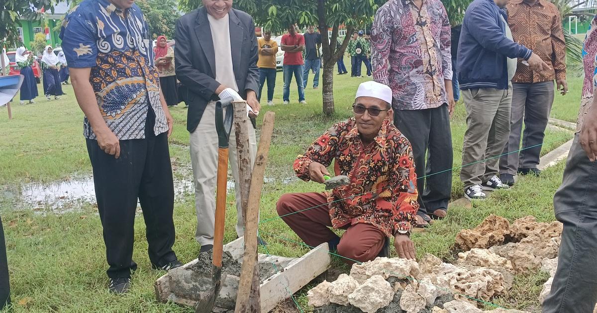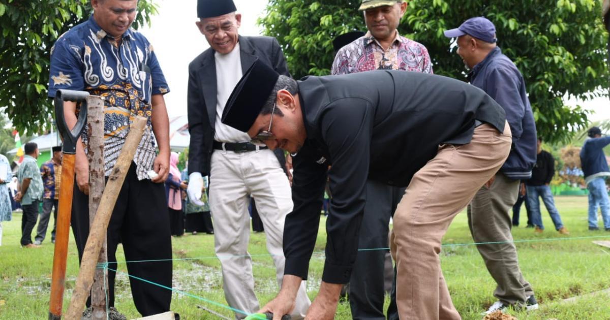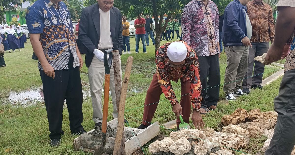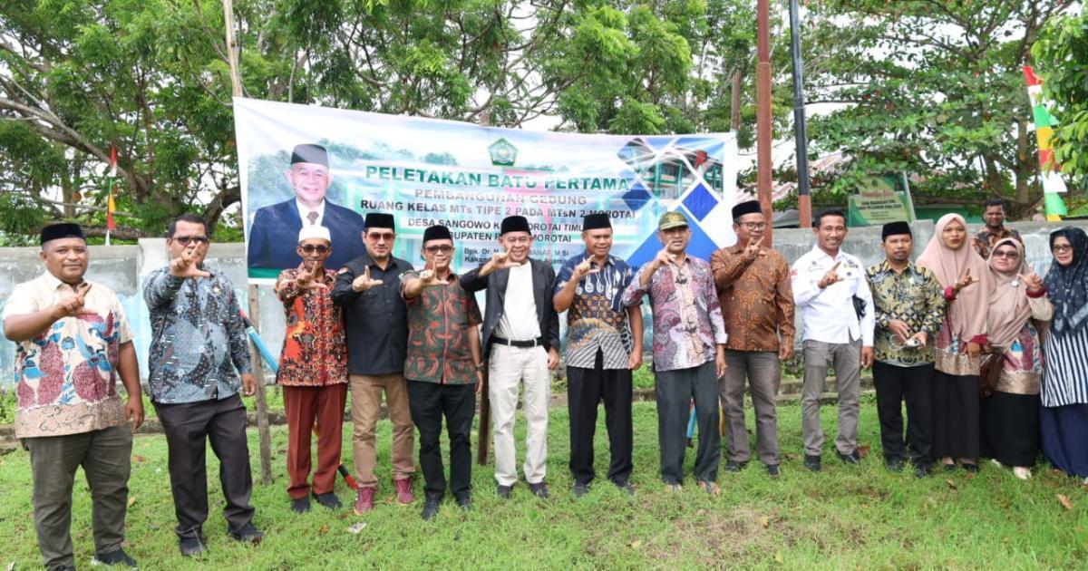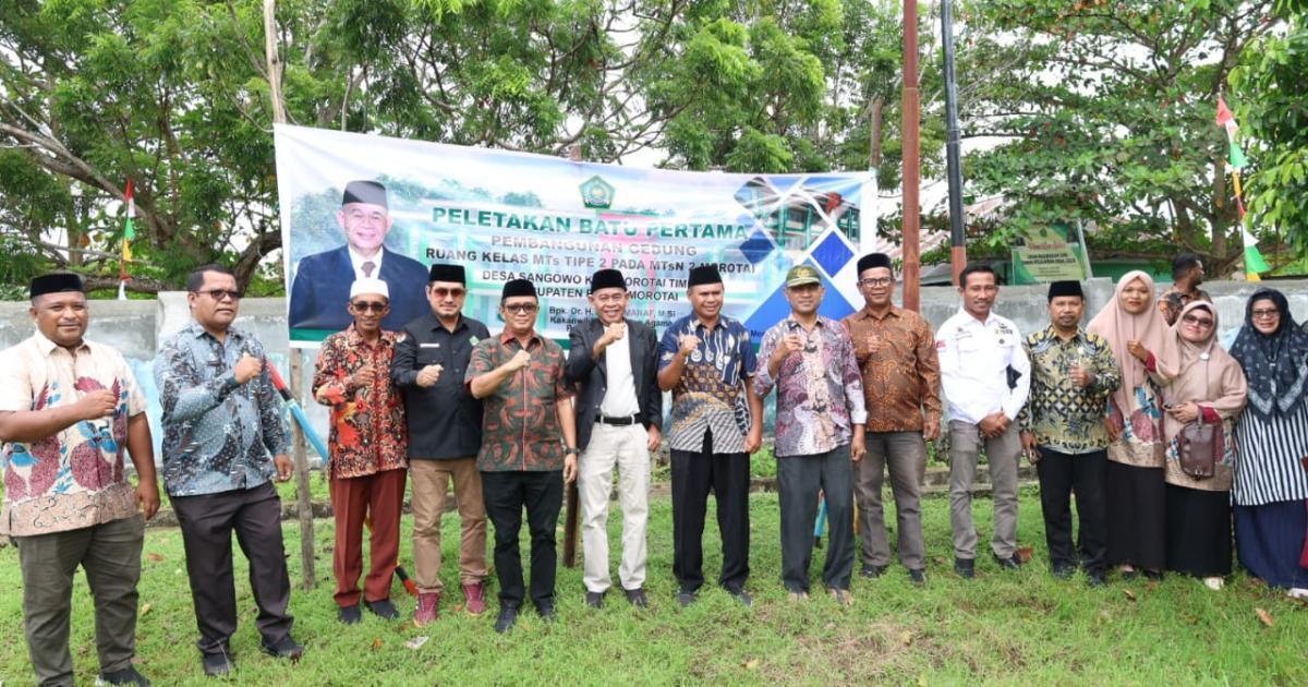 Morotai, Sangowo - (Humas Kemenag Morotai) - Kepala Kantor Wilayah Kementerian Agama Provinsi Maluku Utara (Kakanwil Kemenag Malut), Drs. H. Amar Manaf, M.Si, melakukan peletakan batu pertama pembangunan gedung Madrasah Tsanawiyah Negeri (MTsN) 2 Kabupaten Pulau Morotai, Kamis (7/8/2025) pagi. Dihadiri Kepala Kantor Kementerian Agama Kabupaten Pulau Morotai (Kakankemenag), H. Abdurachman Assagaf, M.Pd.I, Kepala Bidang Pendidikan Islam Kanwil Kemenag Malut, Kepala Bidang Bimbingan Masyarakat Islam Kanwil Kemenag Malut, pejabat eselon IV Kemenag Morotai, kepala madrasah, pengawas madrasah, Kepala desa Sangowo serta ASN di lingkungan Kantor Kemenag Morotai.