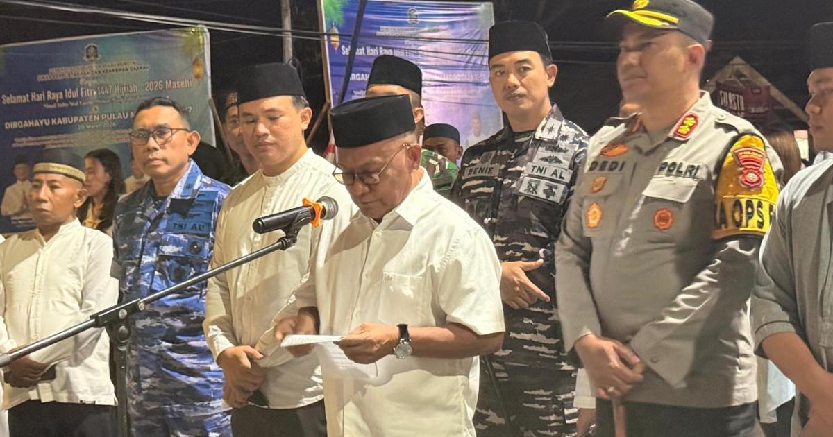 Morotai, (Humas Kemenag Morotai) – Bertempat di wilayah seputaran kota Daruba, dalam nuansa sakral yang merepresentasikan transisi spiritual dari Ramadan menuju Idulfitri, Pemerintah Daerah Kabupaten Pulau Morotai menyelenggarakan pawai obor malam takbiran yang berlangsung meriah dan penuh khidmat, pada jumat (20/04/2026) malam. Kegiatan ini secara resmi dilepas oleh Bupati Pulau Morotai, Drs. Rusli Sibua, M.Si. didampingi Kepala Subbagian Tata Usaha Kantor Kementerian Agama Kabupaten Pulau Morotai, H. Musanif Sibua, S.Ag sebagai representasi kehadiran institusi negara dalam ruang-ruang kultural keagamaan.