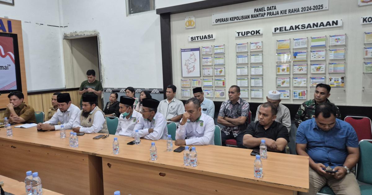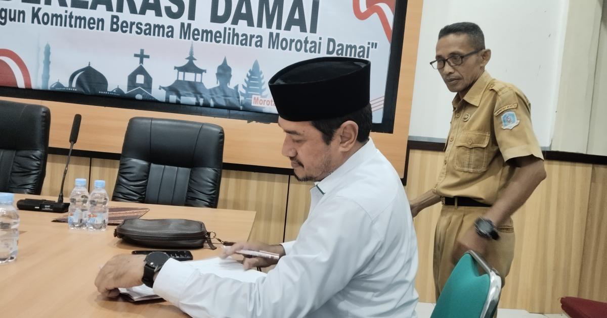 Morotai — (Humas Kemenag Morotai) — Kepala Kantor Kementerian Agama (Kakankemenag) Kabupaten Pulau Morotai, H. Abdurachman Assagaf, S.Ag., M.Pd.I didampingi Kepala Subbagian Tata Usaha, H. Musanif Sibua, S.Ag., MM, serta Kepala Seksi Bimbingan Masyarakat (Bimas) Kristen, M. Tiar Fatra, S.Th. menghadiri kegiatan Deklarasi Damai bersama Bupati Pulau Morotai dan Forum Koordinasi Pimpinan Daerah (Forkopimda) di Aula Polres Pulau Morotai, Senin (6/4/2026).