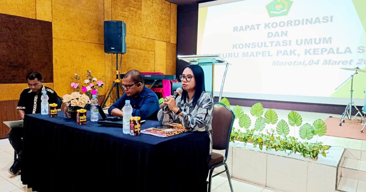 Morotai — (Humas Kemenag Morotai) — Kepala Bidang Bimas Kristen Kanwil Kemenag Provinsi Maluku Utara, Hans L. Tongotongo, menegaskan bahwa pelaksanaan Pendidikan Profesi Guru (PPG) mata pelajaran Pendidikan Agama Kristen (PAK) merupakan kebijakan pemerintah pusat melalui Kementerian Agama RI. Penegasan itu disampaikan dalam Rapat Koordinasi Pendidikan Agama dan Keagamaan Kristen Seksi Bimas Kristen Kantor Kemenag Kabupaten Pulau Morotai, Rabu (4/3/2026).