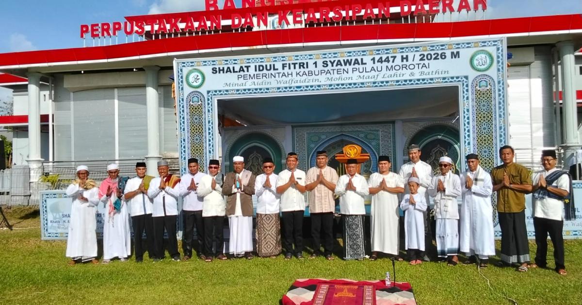 Morotai, - (Humas Kemenag Morotai) - Dalam sebuah lanskap religius yang sarat makna simbolik dan kohesi sosial, pelaksanaan Shalat Idulfitri 1447 Hijriah di Kabupaten Pulau Morotai berlangsung dengan khidmat dan terpusat di Lapangan Merah Putih, Kota Daruba, pada Sabtu (21/04/2025) pagi.